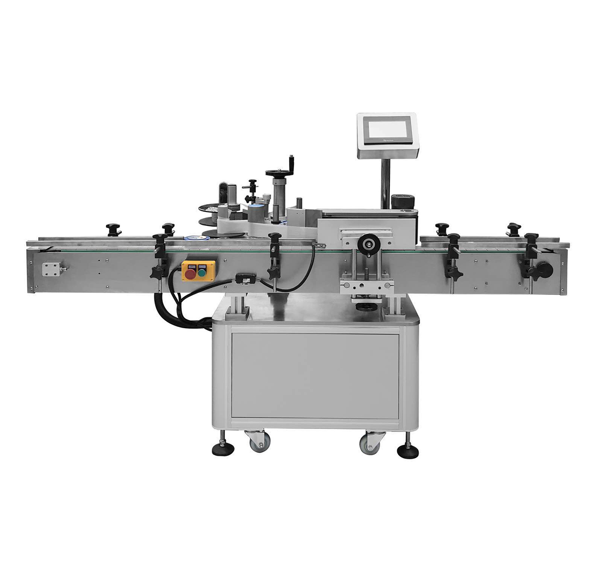 主要是采用不干膠卷筒貼標紙,貼標采用滾貼方式,配制自動送瓶和收瓶裝置,一次完成放瓶、貼標及收瓶程序,還可配備印字機同步完成標簽打印,本機采用電腦光纖控制,同步追蹤,出標由互感步進電機控制,出標速度與卷瓶速度同步的自動化包裝機械。是現代的機電一體化產品,具有優良和的工作性能。不干膠貼標機具有不發霉、清潔衛生,貼標后牢固、美觀、不會自行脫落,生產效率高等優點。