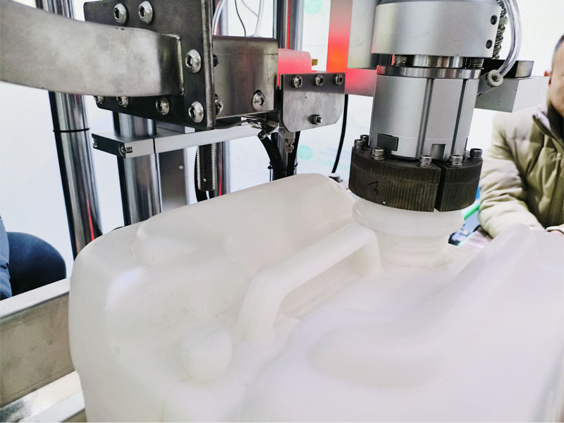 化工桶自動旋蓋機的性能以穩定、高效、嚴密為技術核心,在擰蓋效率方面有著卓越的表現,它運用自動化控制系統,可以適配生產線高速灌裝后旋蓋節奏,并且在擰蓋的穩定性上,大桶抓式擰蓋機具有超強的穩定效果,它能夠將扭矩精度控制在 ±3%,即使面對桶口因運輸輕微變形的化工桶,也能通過自適應調節確保擰蓋到位。